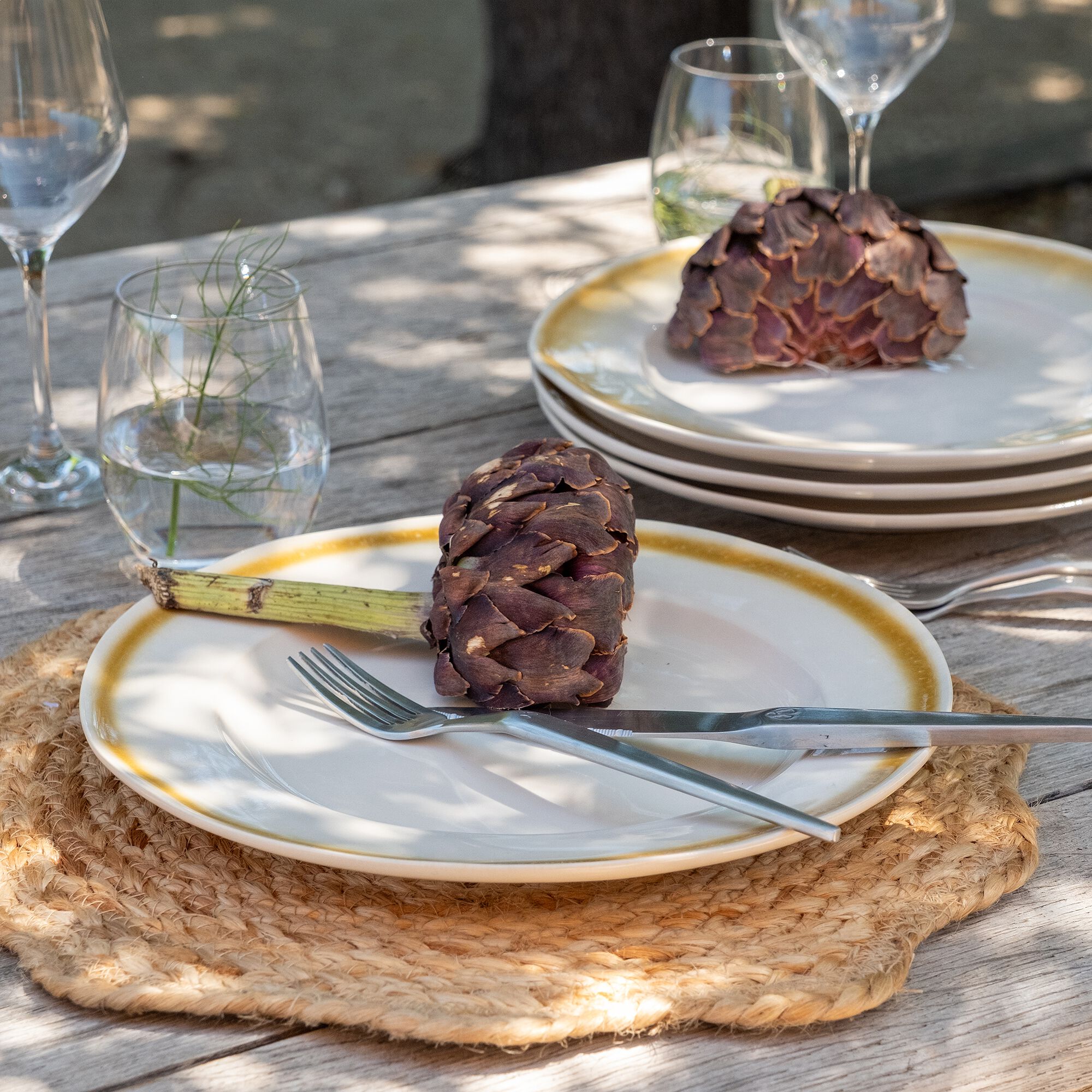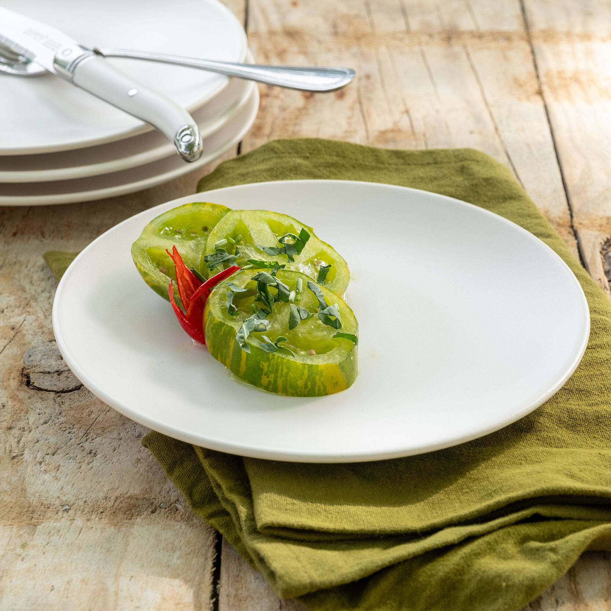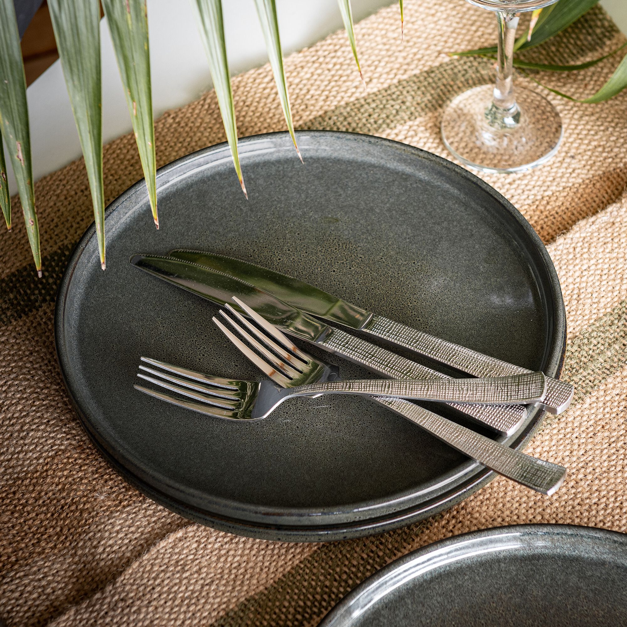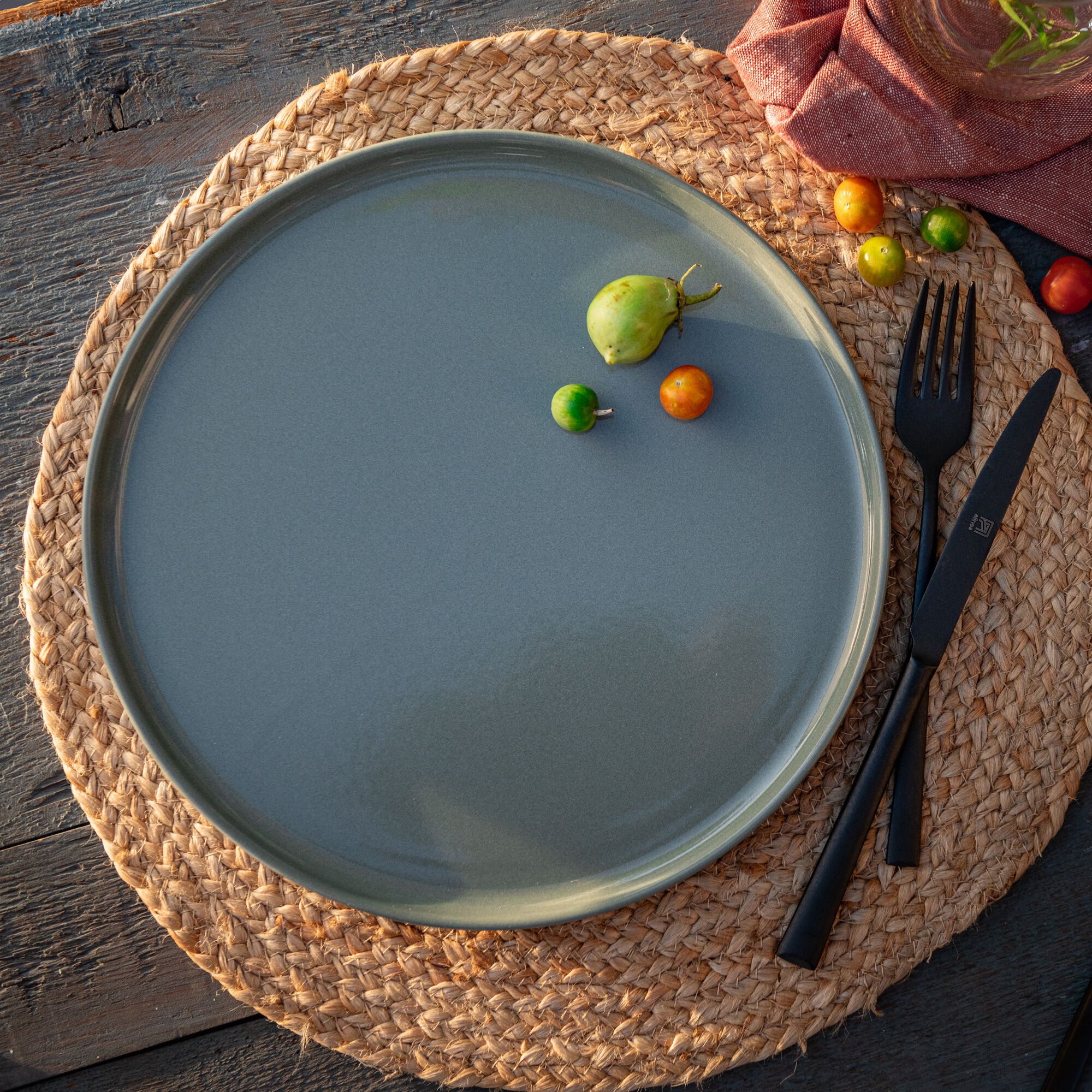 SELMA - Assiette plate en faïence D28cm - vert cèdre