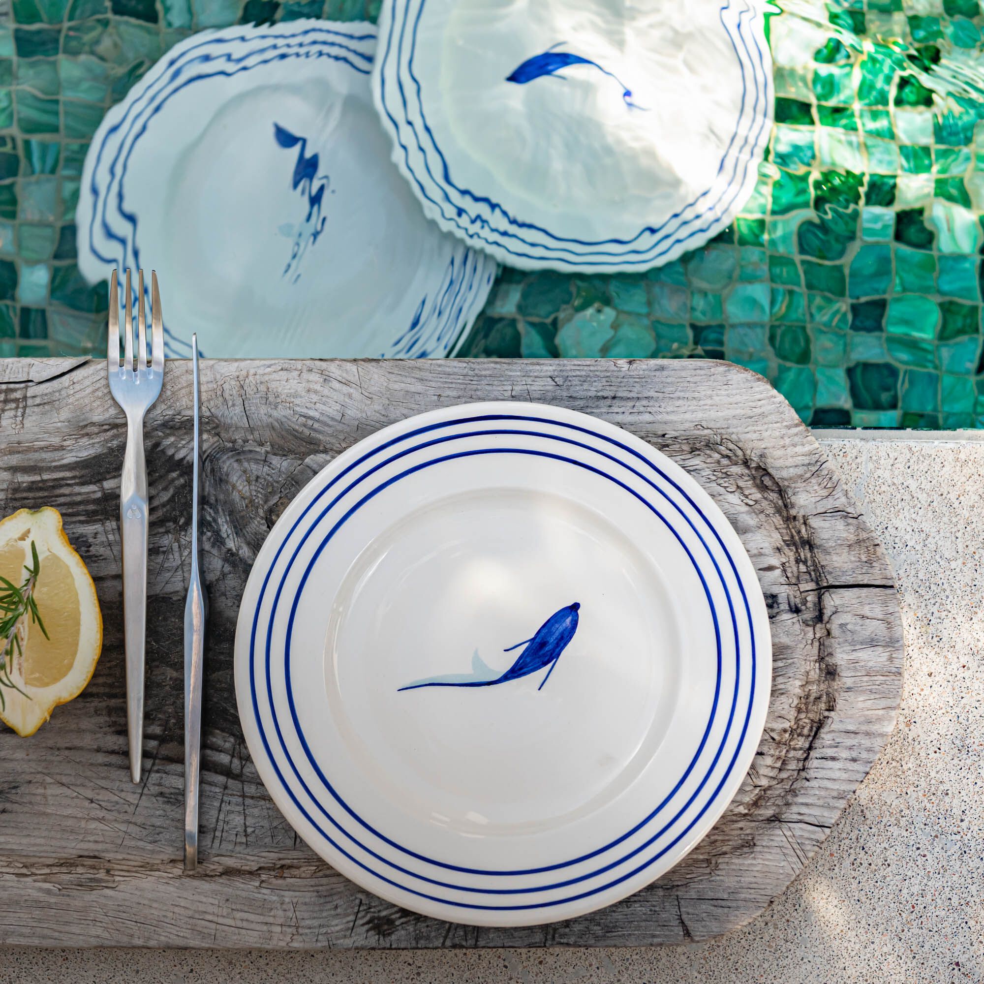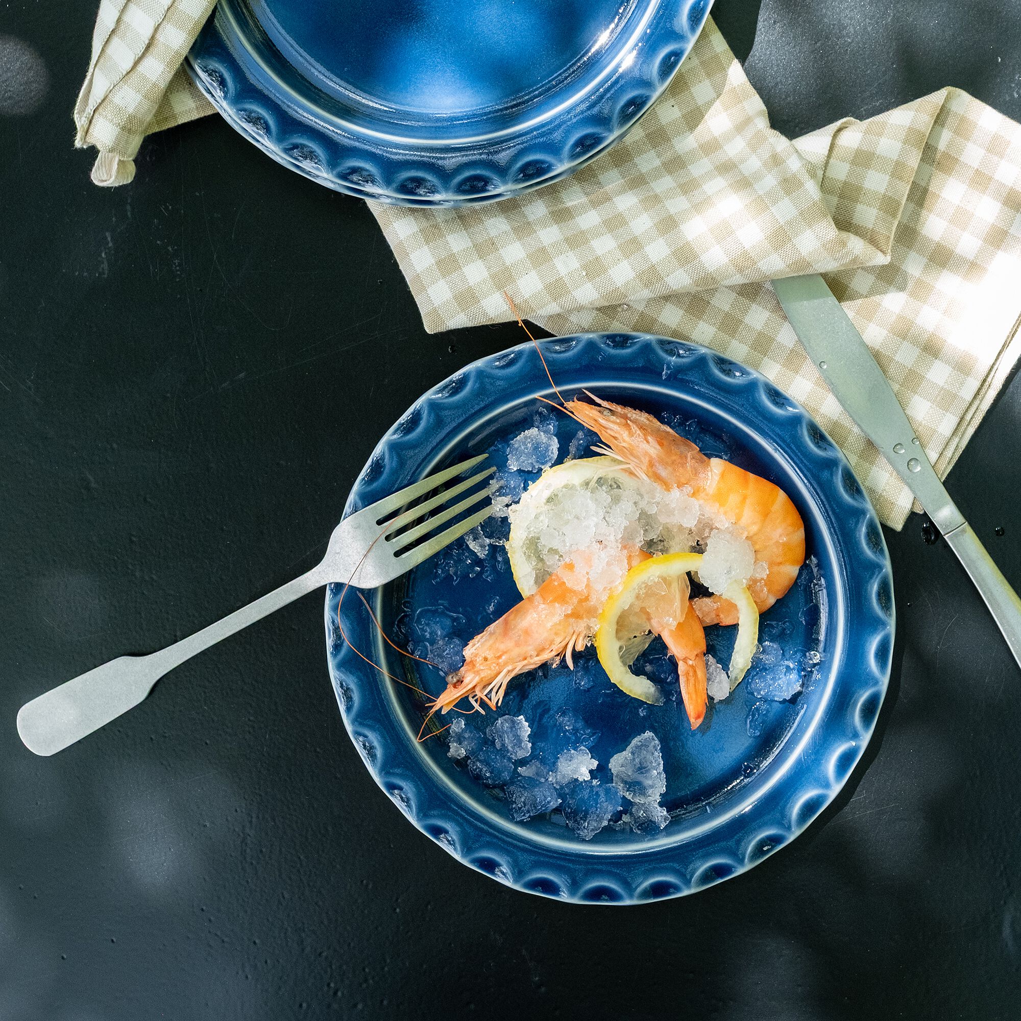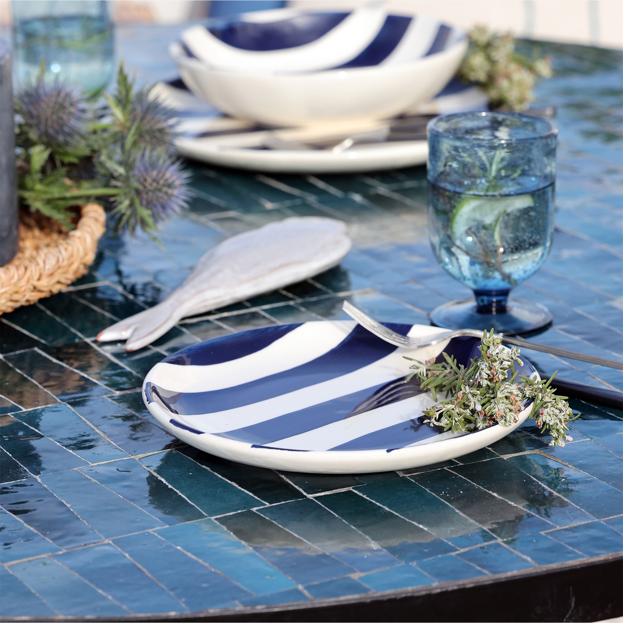 ABILIO - Assiette à dessert ondulée en grès D21cm - bleu