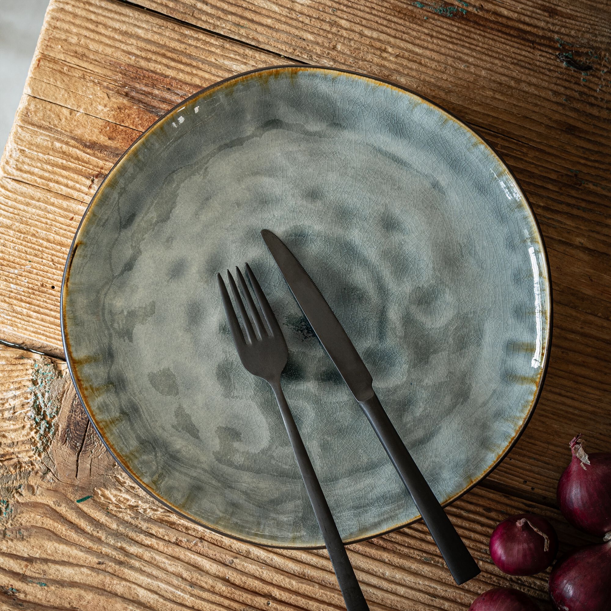 SELIME - Assiette plate en grès émail réactif D27,5cm - gris