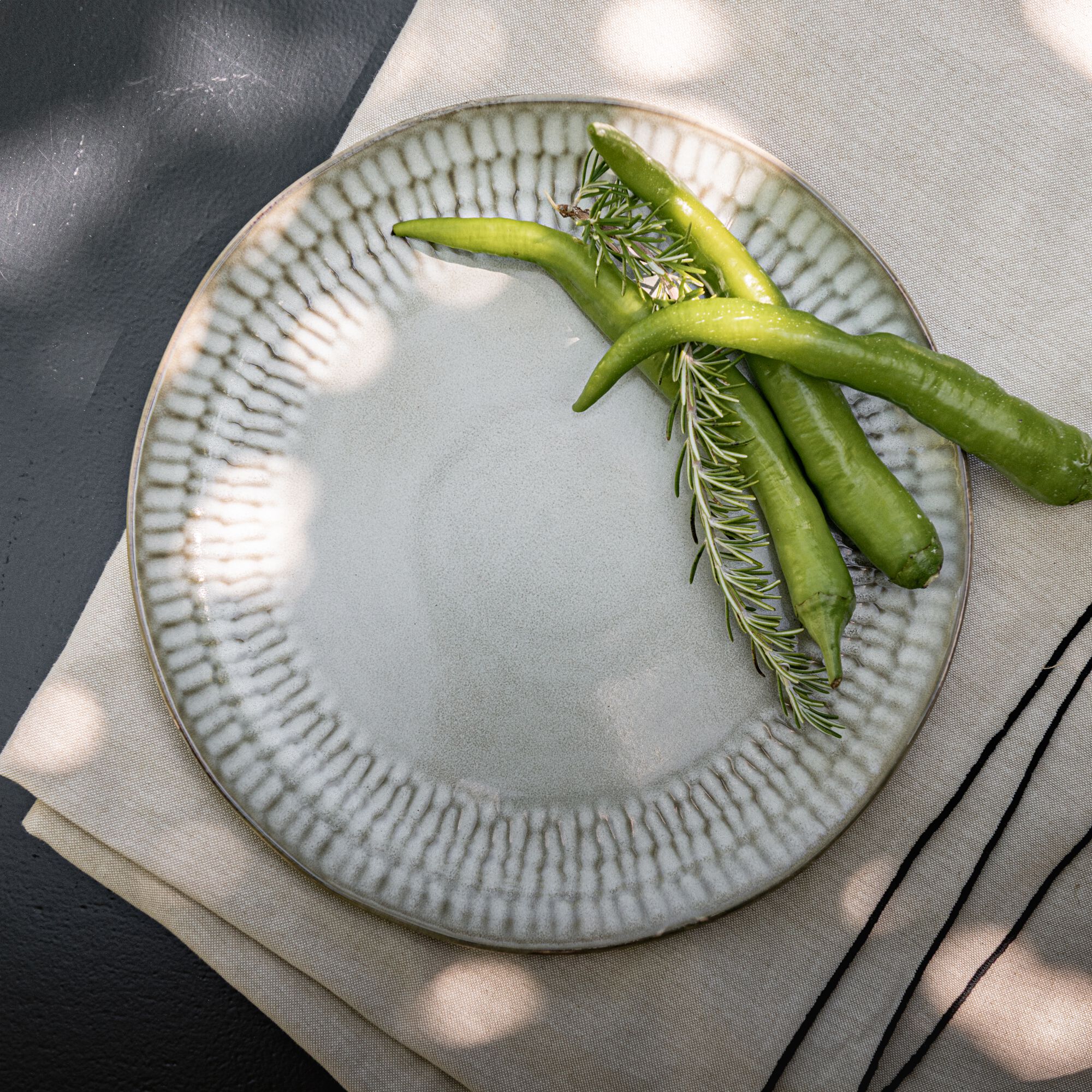 FRIA - Assiette à dessert rayée en grès D21,6cm - noir