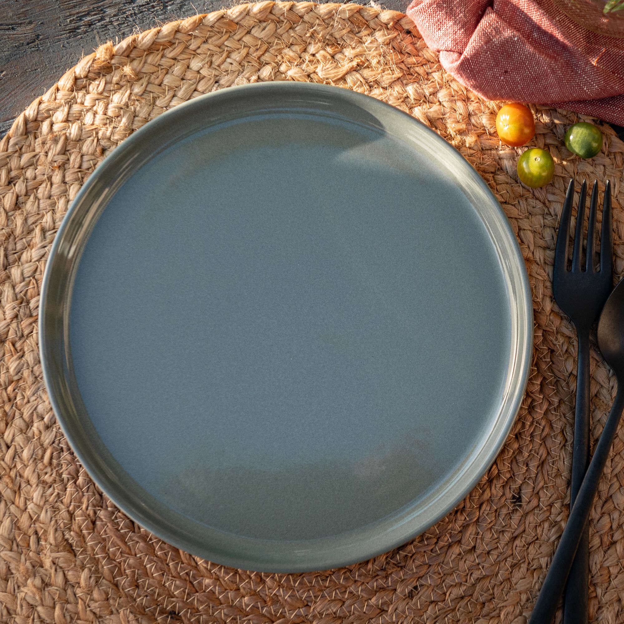 SIENNA - Assiette plate en grès D27,2cm - brun café