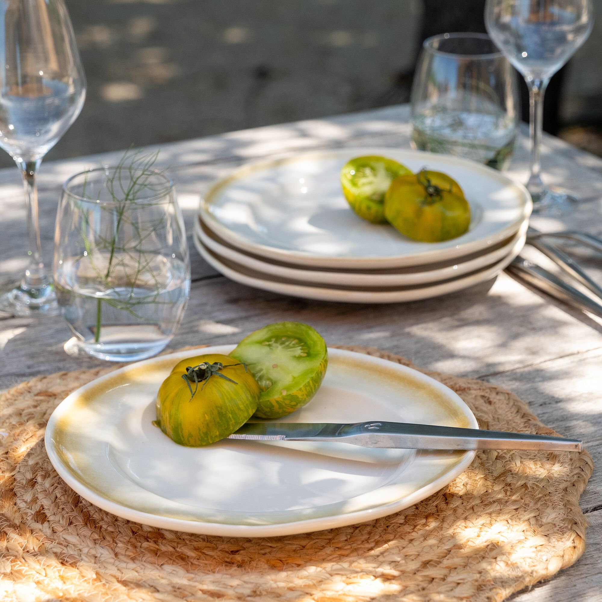 FRIA - Assiette à dessert rayée en grès D21,6cm - blanc