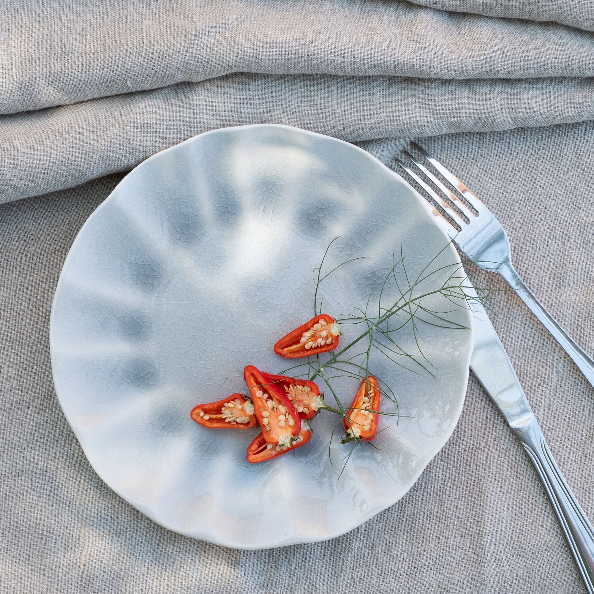GIULIA - Assiette à dessert ondulée en grès D21cm - bleu