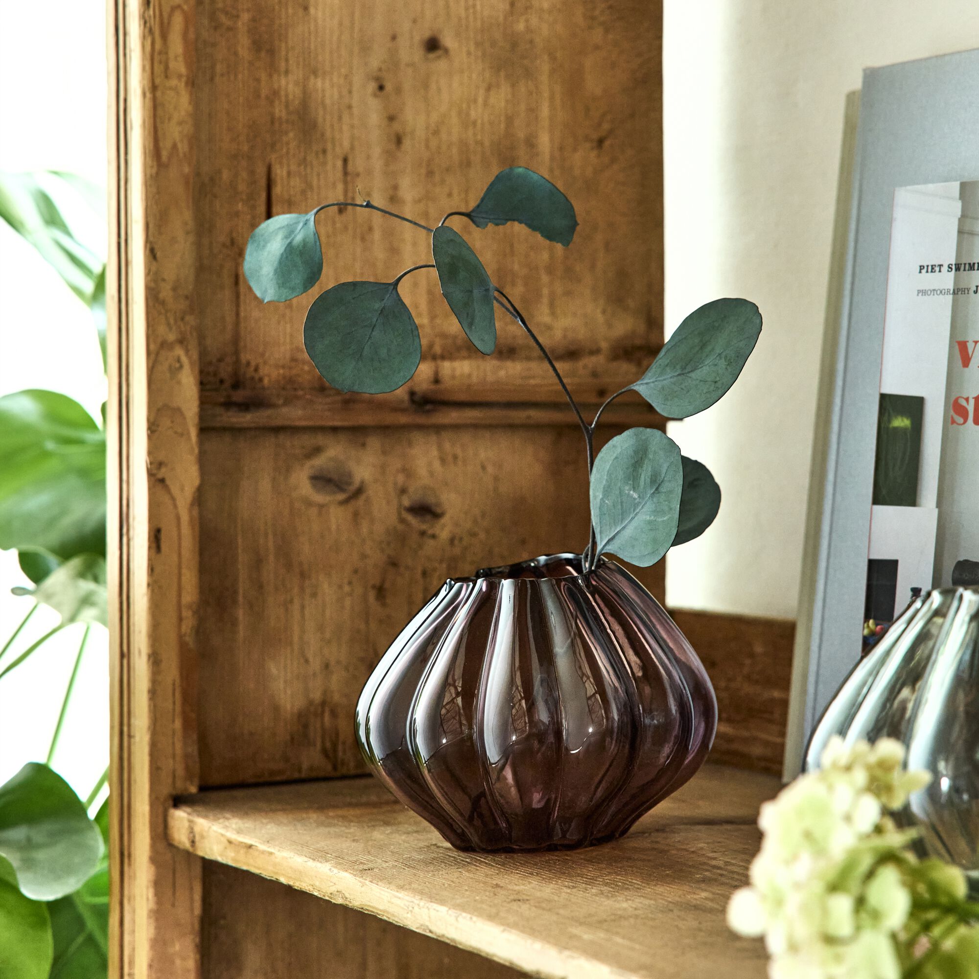 SAUZE - Soliflore en verre à motif H12cm - beige