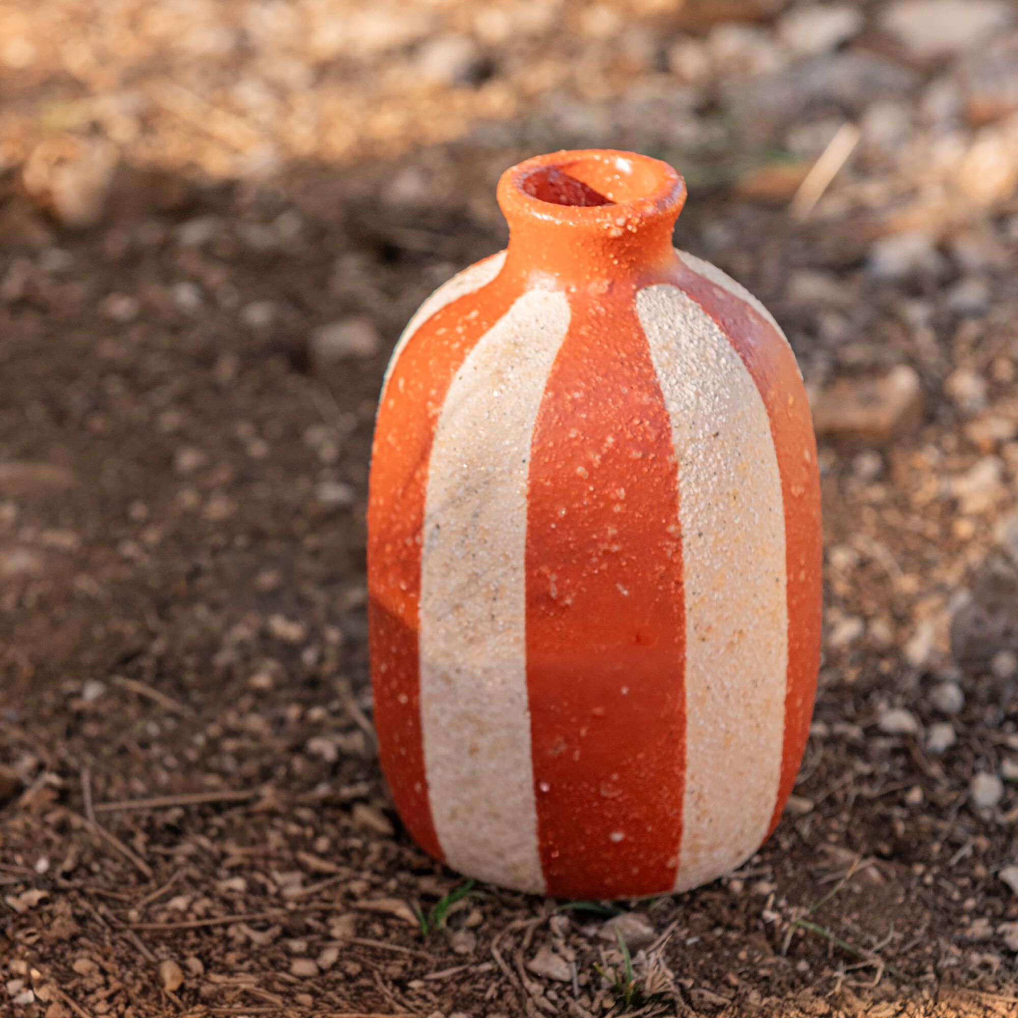 STUDEN - Petit vase en grès strié H7,8cm - blanc