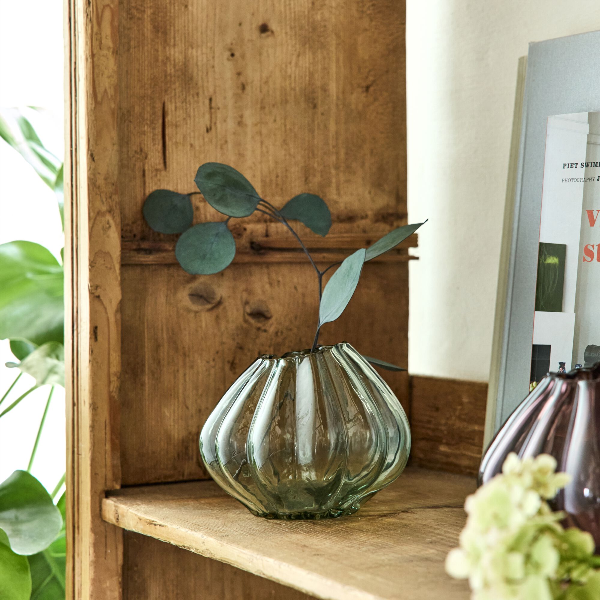 SAUZE - Soliflore en verre à motif H12cm - vert