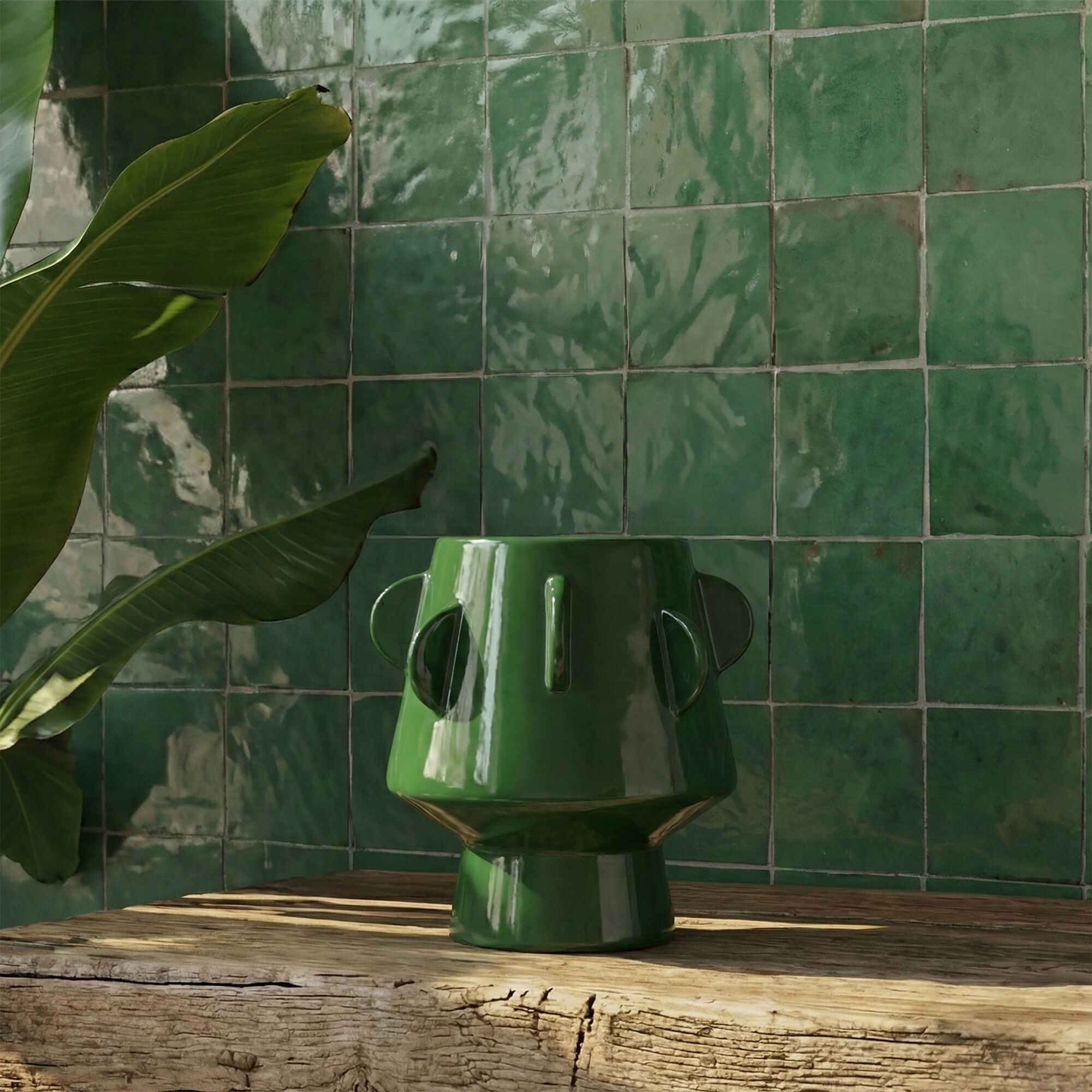 DELICIAS - Vase contemporain en dolomite H17,5cm - vert