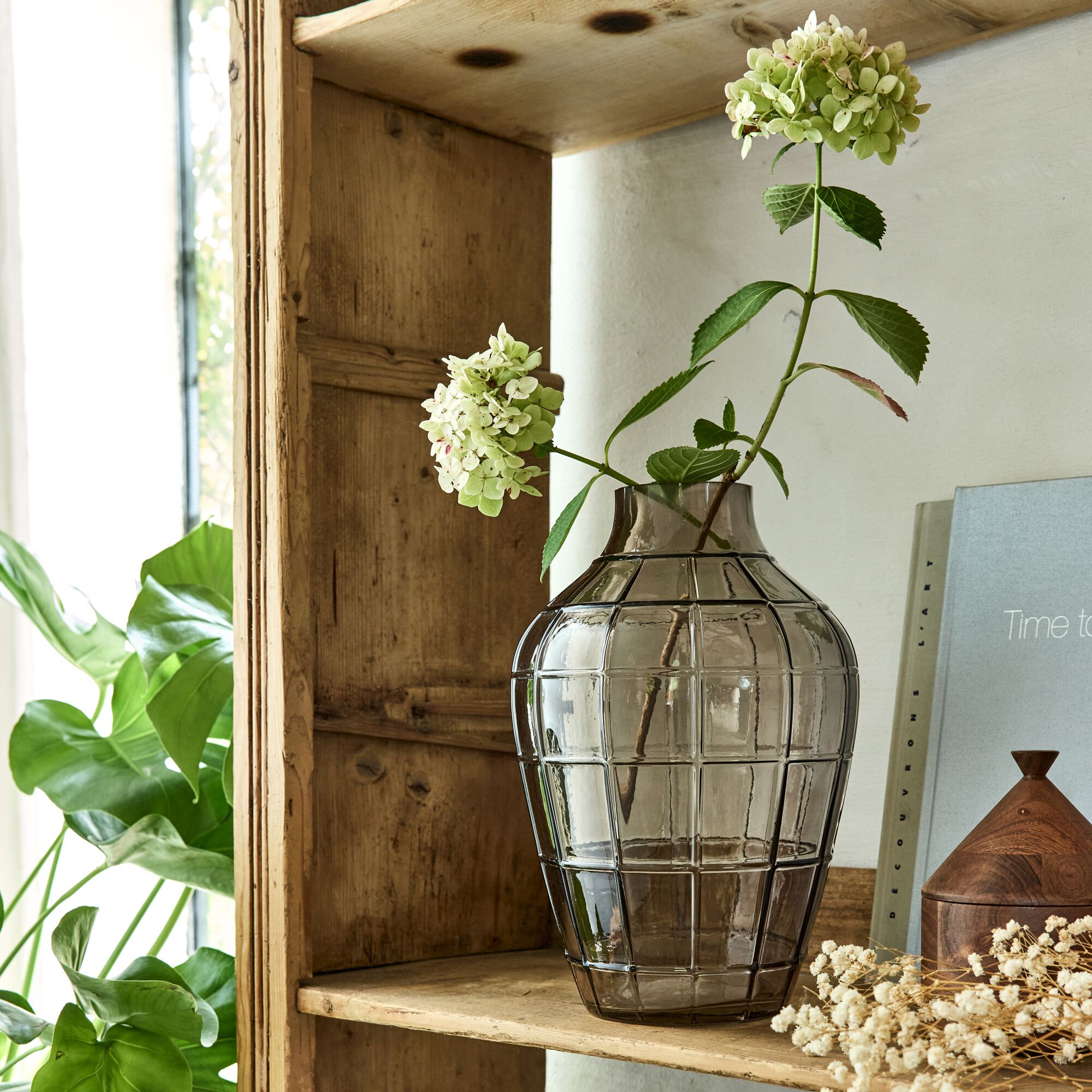 LOUNY - Vase quadrillé en verre teinté H30cm - gris