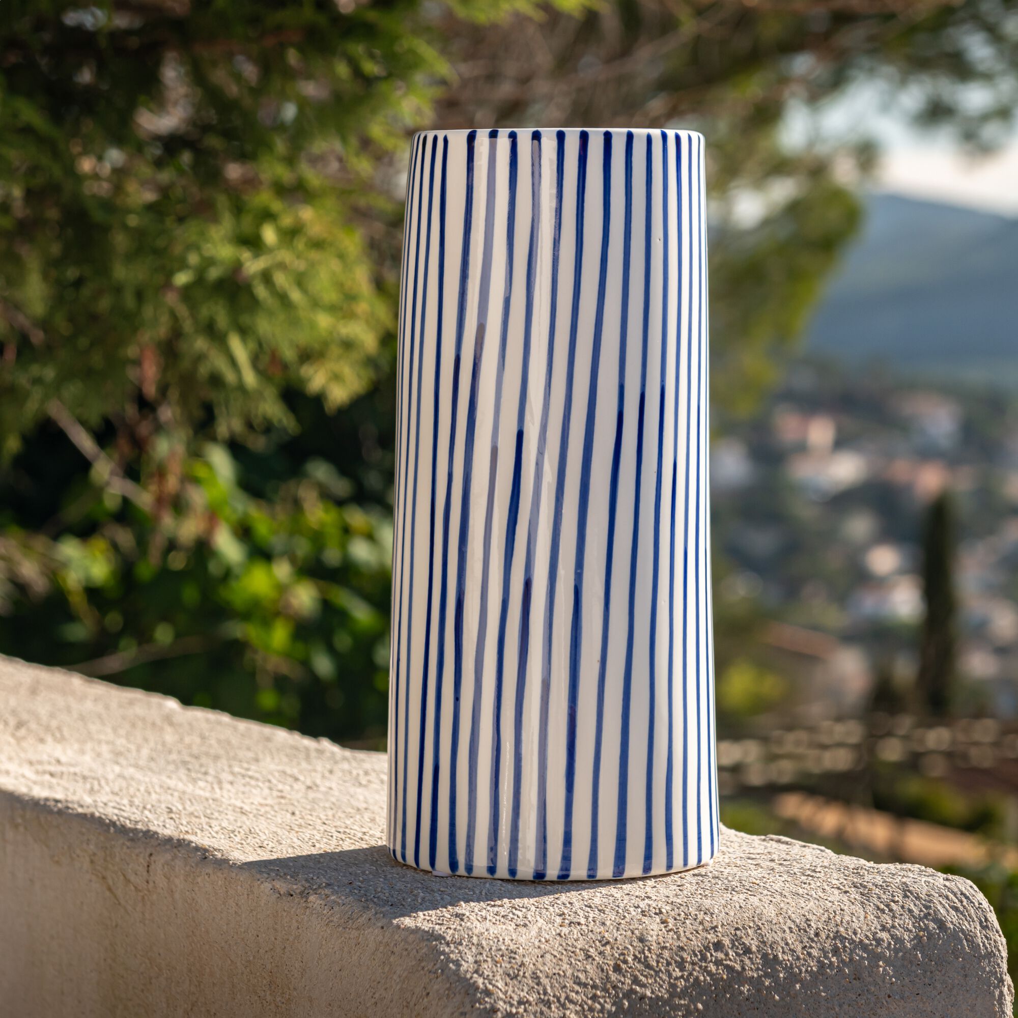 CADAS - Vase tube en grès H27,5cm - bleu et blanc