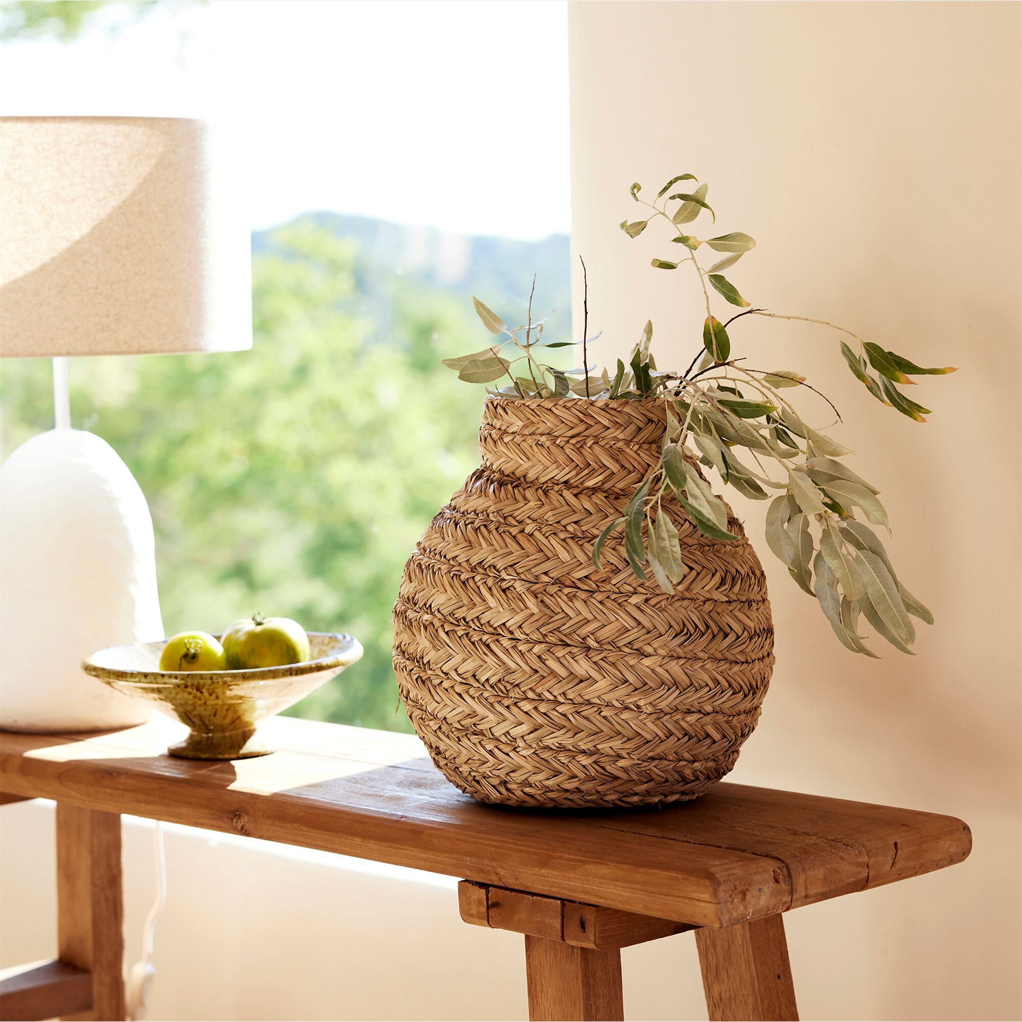 ANTELIAS - Vase boule en herbes marines tressées H46cm - naturel