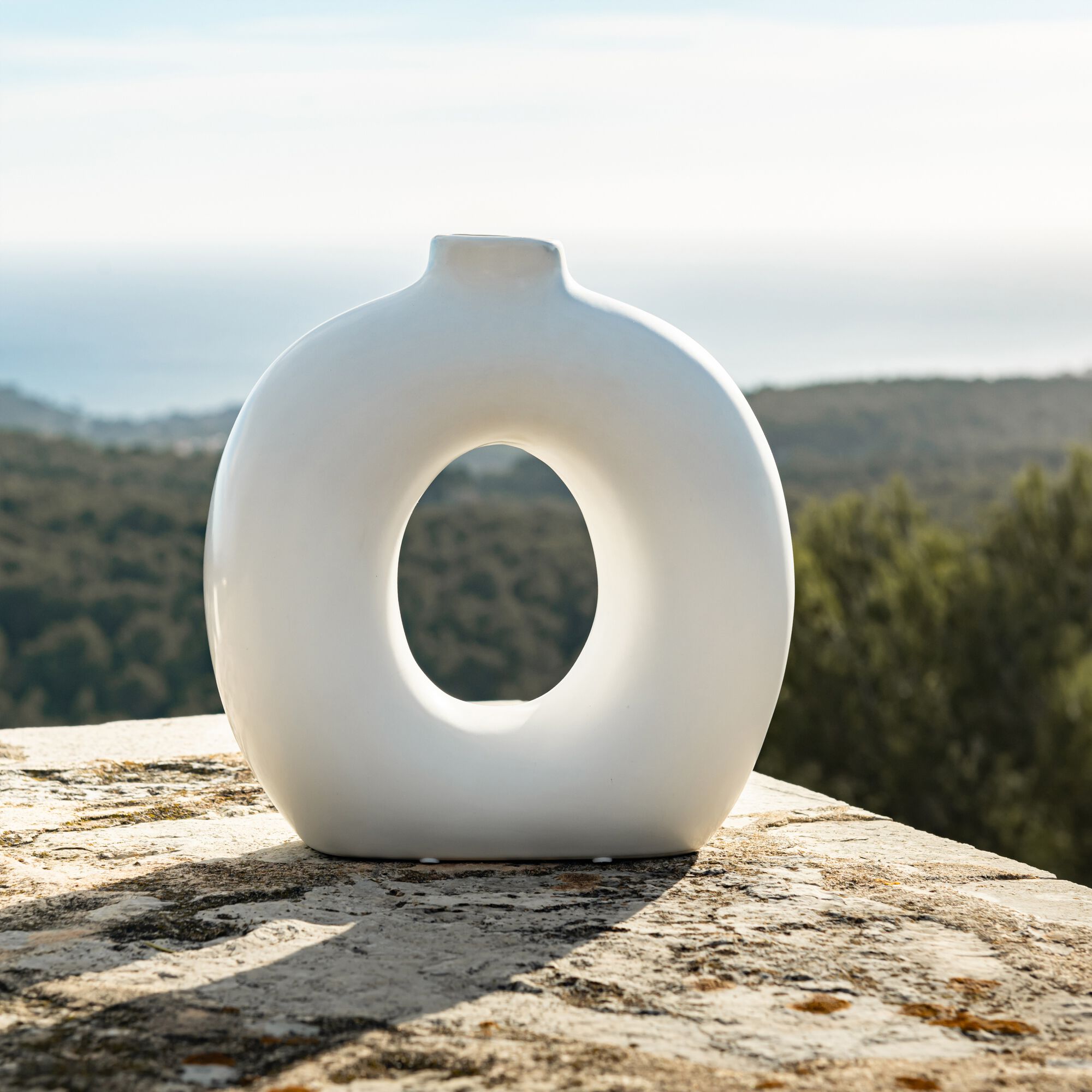 LEUCATE - Vase à trou contemporain en dolomite H25cm - blanc