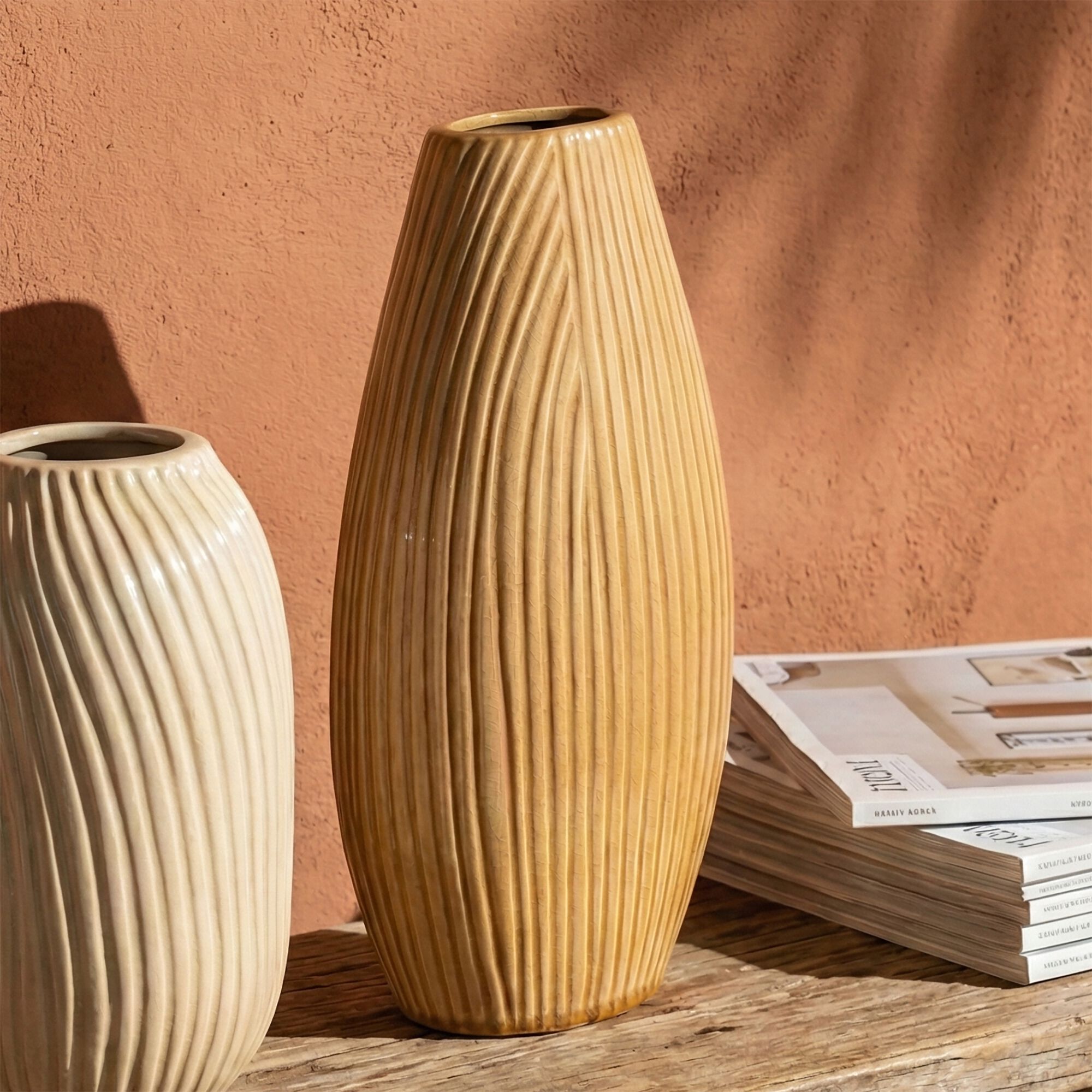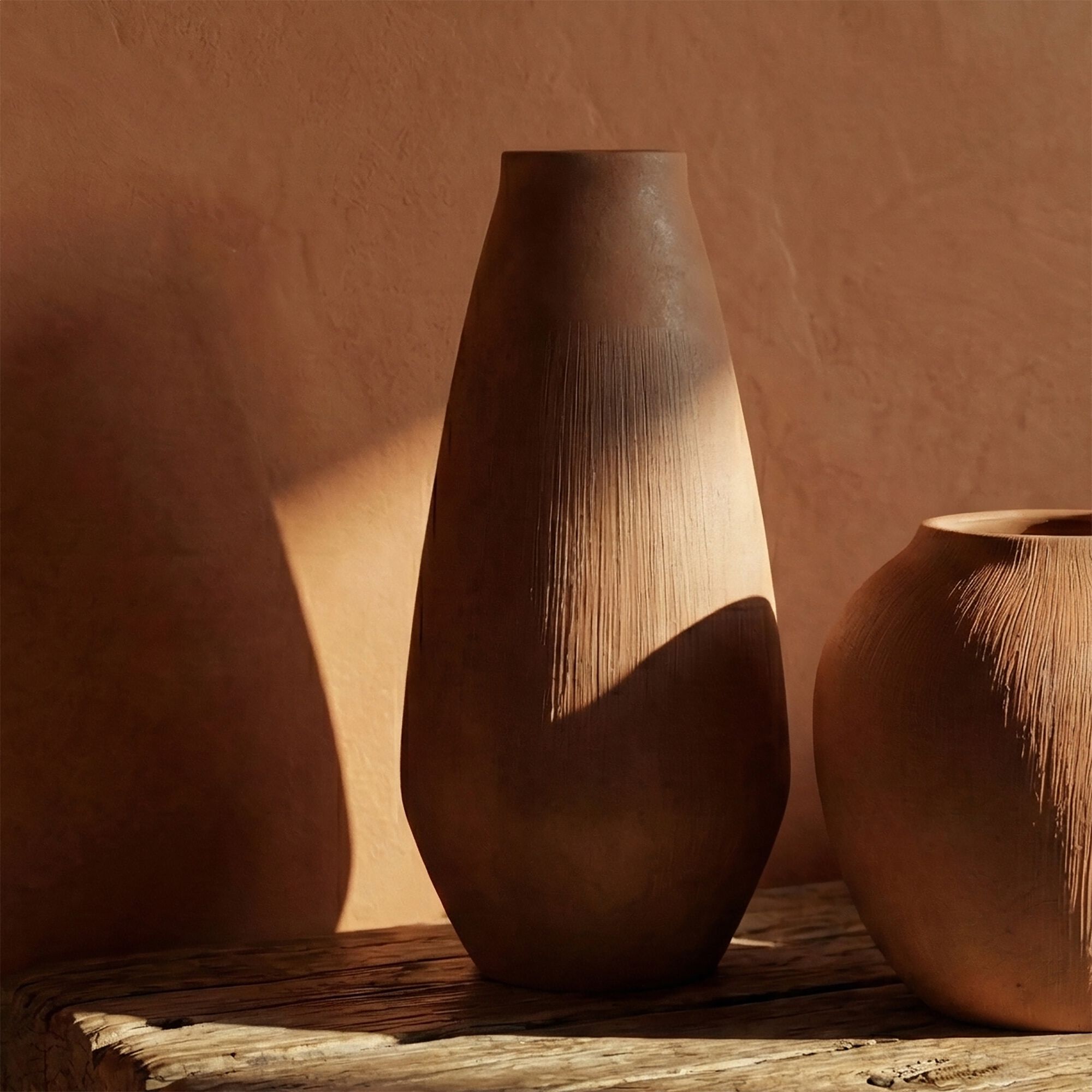 TINGHIR - Vase contemporain en terre cuite H34cm - naturel