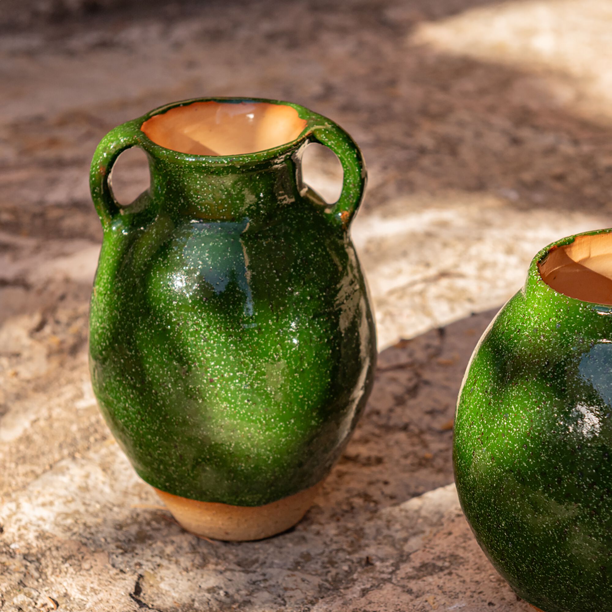 BRIERE - Vase amphore bicolore en grès H15,7cm - vert
