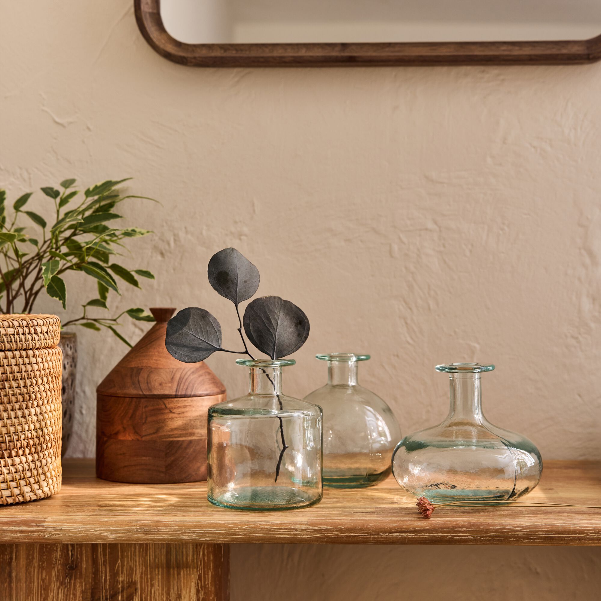 AREZZO - Vase en verre et bois - gris H23,5cm