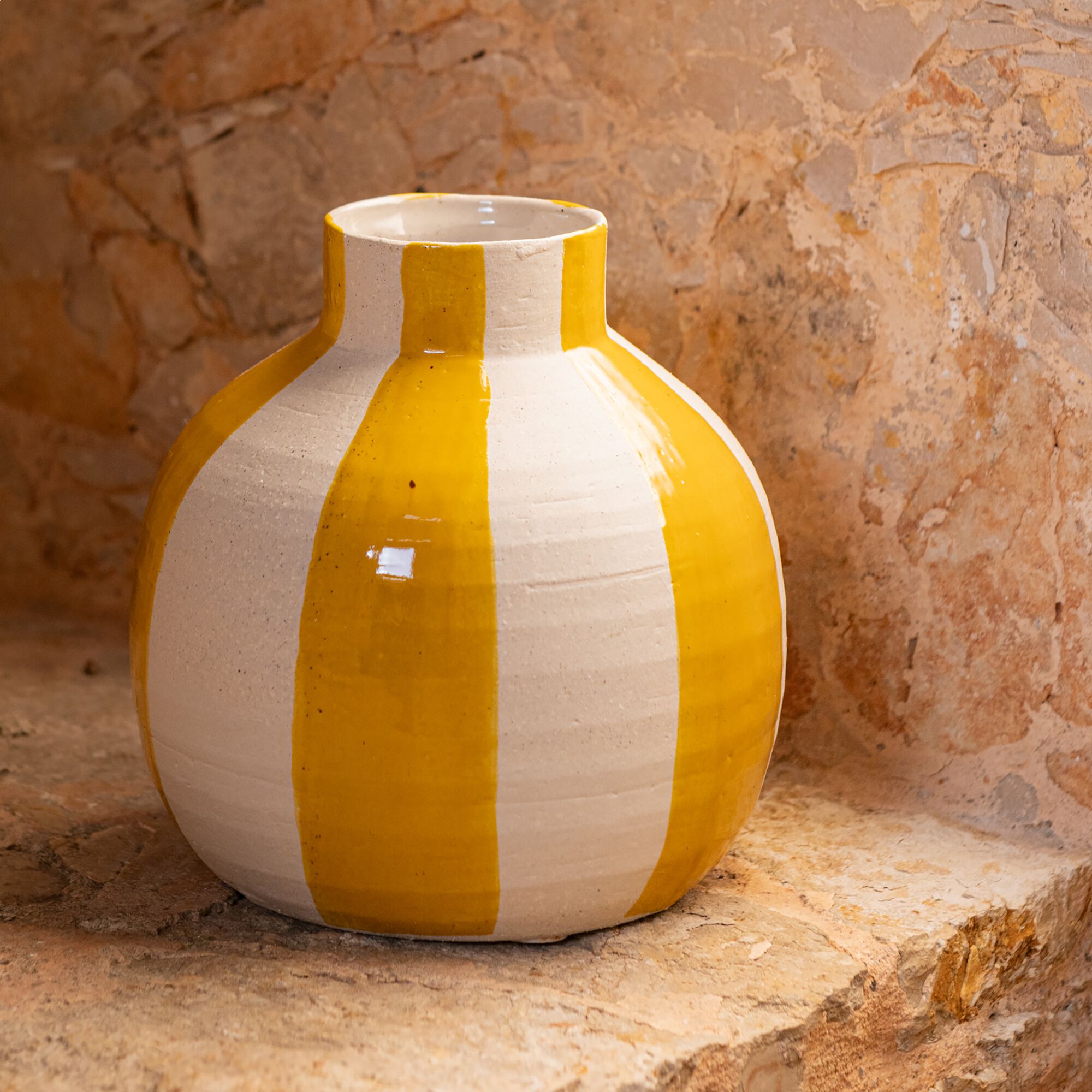 CAMPECHE - Vase boule en grès D16,5cm - jaune et blanc